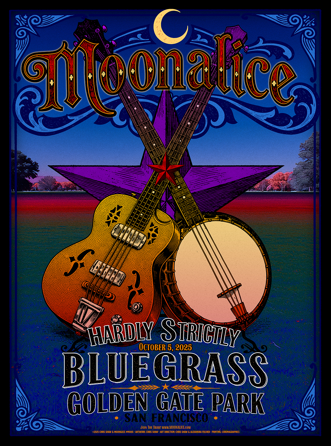 According to Moonalice legend, this is the 25th annual Hardly Strictly Bluegrass. Moonalice has played at 16 of them, which covers all but two years since Moonalice first started.